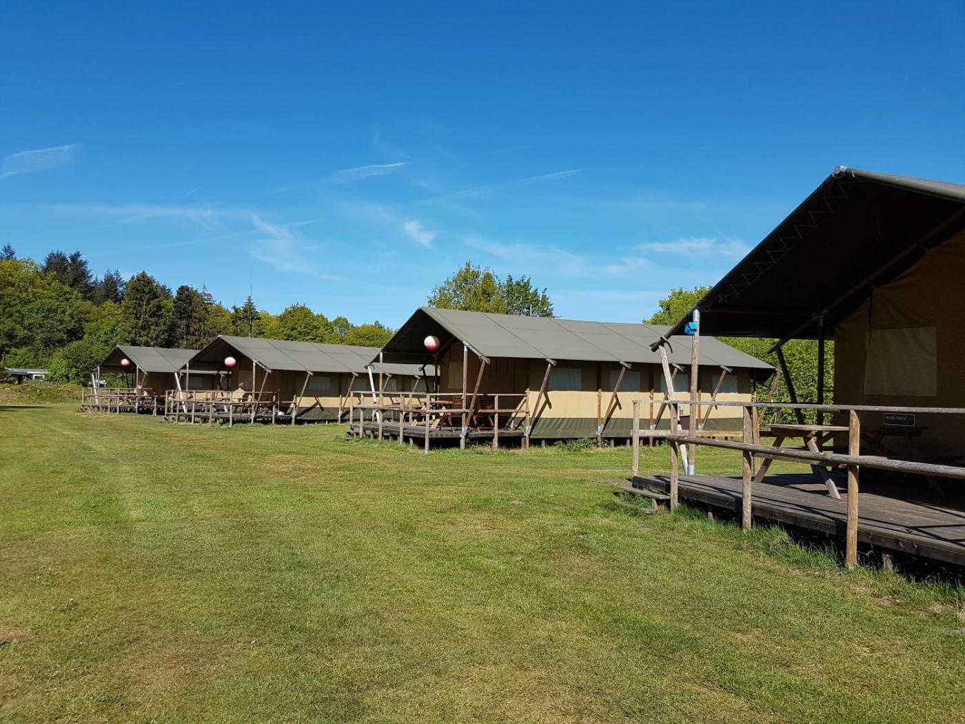 Tent. The tent offers a seating area and a dining area, as well as a private bathroom boasting a shower. Guests will find a refrigerator in the kitchen. The tent also features a barbecue. This tent has a private entrance, a tea and coffee maker, a flat-screen TV with cable channels and a terrace. The unit has 3 beds.
