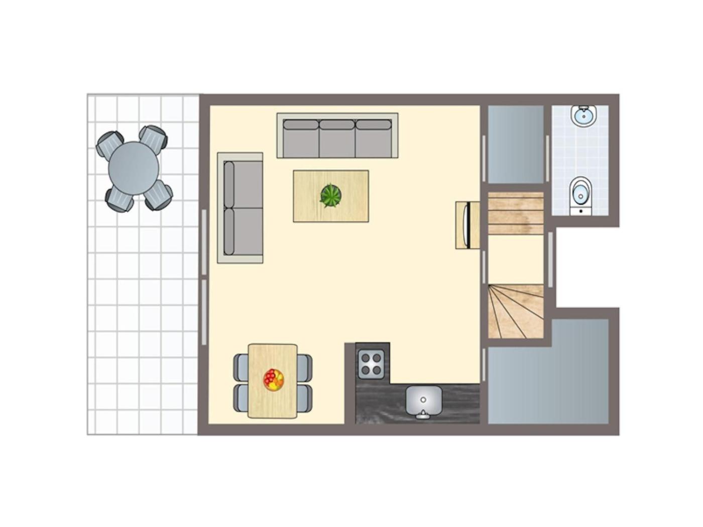 Two-Bedroom Holiday Home. This spacious holiday home comprises 2 bedrooms, kitchen, a terrace and 1 bathroom with a shower. Meals can be prepared in the kitchen, which comes with a stovetop, a refrigerator, a dishwasher and an oven. The holiday home provides a washing machine, a tea and coffee maker, a high chair for children, a TV with cable channels, as well as garden views. The unit offers 3 beds.